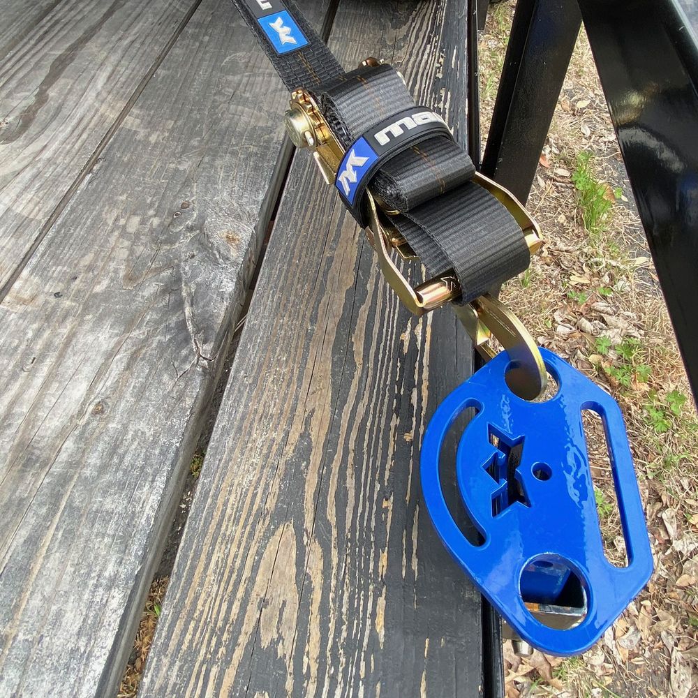 The Monkey Face is laser cut from .375" steel and welded to a .1875" thick steel tube. Both have a powder-coated finish and the Monkey Face has been rated to 10,000 lb. Minimum Break Strength (MBS). Built to receive all Mac's end fittings, the laser-cut shapes on the top surface are designed to match with our end fitting offerings, including: flat snap hooks, twisted-snap hooks, S-hooks, and flat hooks. You can even use it with cables, chains, wire ropes, and more!