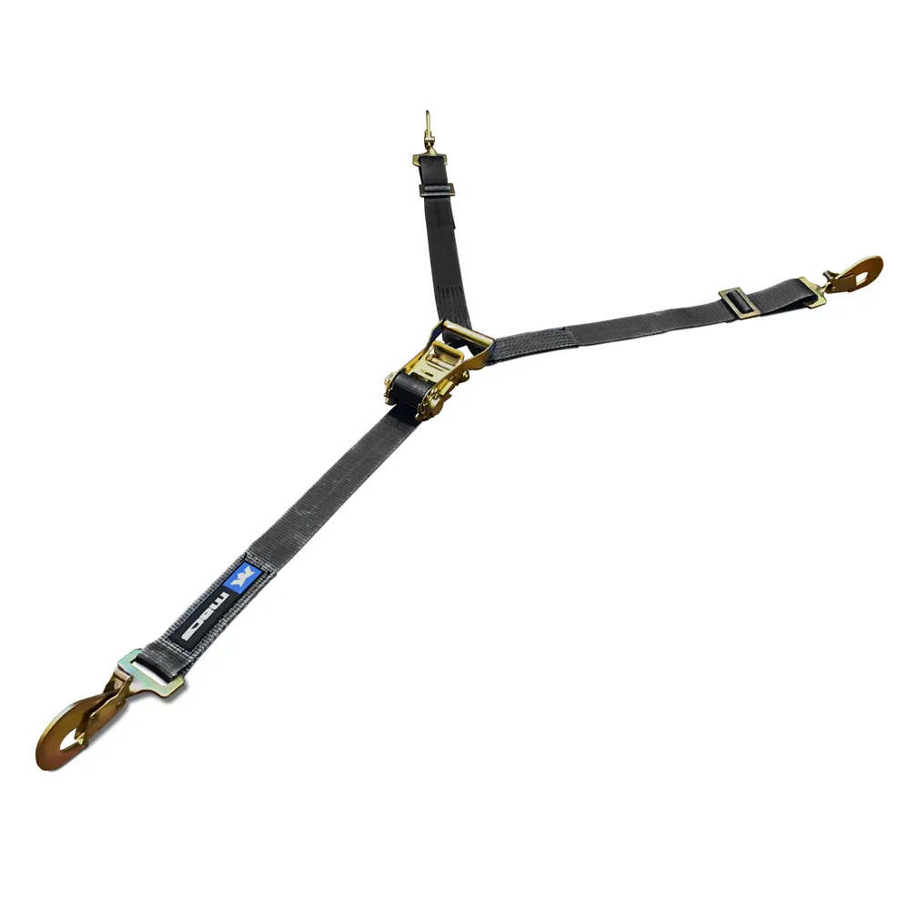 Mac's Y-Strap is built to survive. This racer-first approach to our equipment is also why Mac's Y-Straps look so good. Our Y-Strap is rated to 5,000 lb. Minimum Breaking Strength (MBS), giving you plenty of safety margin. The foundation of our Y-Strap is our premium webbing. This is the same 12,000 lb-rated material used on our vehicle tie-down straps. It offers superior UV and abrasion resistance, so you can count on years of survival through rough terrain. But strap assemblies are only as good as the stitching that holds them together. That's why each connection on a Mac's Y-Strap is sewn using the highest stitch count in the industry. All metal components on our Y-Strap now include our improved zinc coating for even better corrosion resistance.