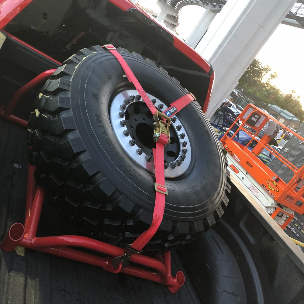 Built so your spare finishes the race with you! The Mac's Y-Strap offers several advantages over typical spare tire tie-down solutions. Blowing a tire in the middle of nowhere is bad enough. Discovering your spare flew off a mile earlier is worse. Y-Straps need to do more than look good holding a spare. Your tie-down system needs to handle the demands of off road racing, and recent changes banning tire balls in certain race series make it even more important to be able to depend on your spare.