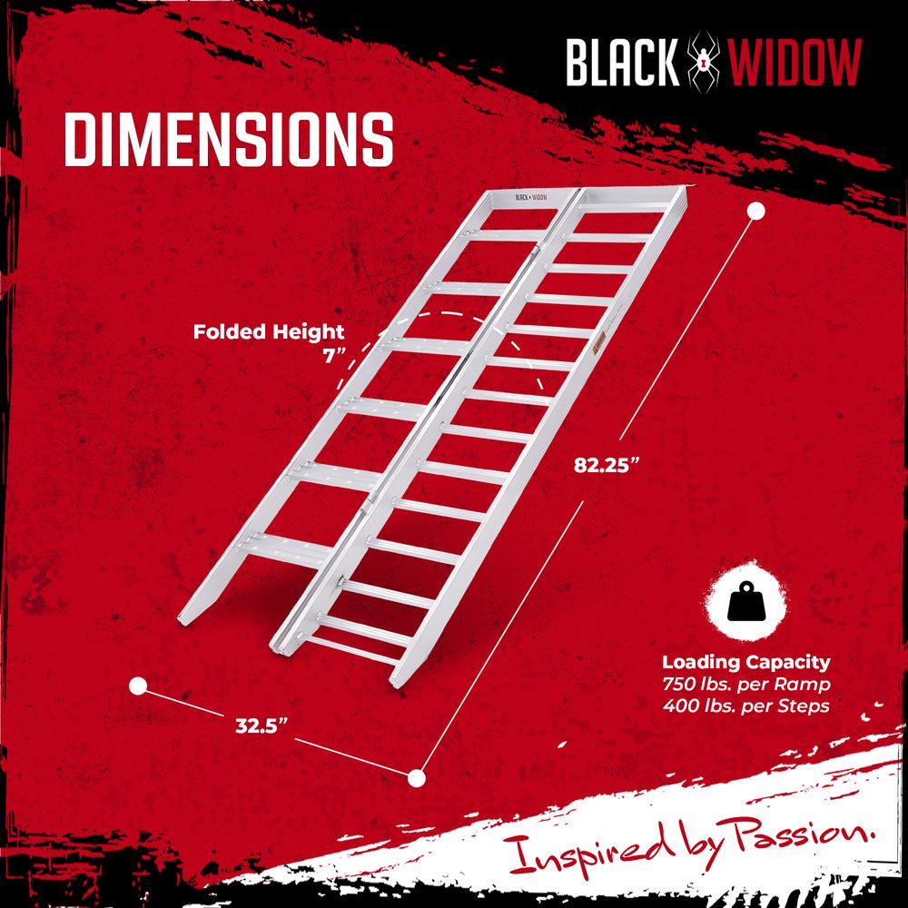 The traction steps support up to 400 lbs. of person and gear, and the ramp rungs assist in loading motorcycles up to 750 lbs. Two safety straps are included to prevent kick-outs while loading or unloading.
