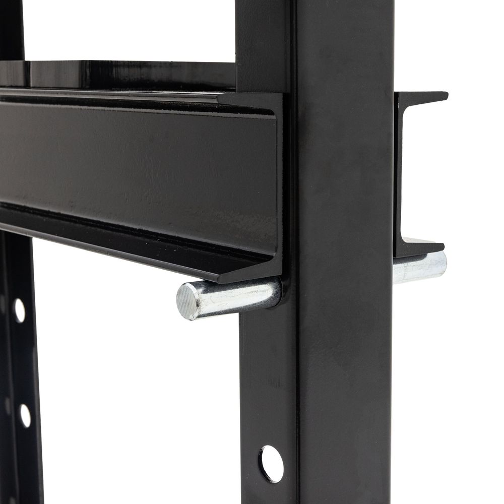 Use the manual hand pump to incrementally apply the force you need. Position the work table at the ideal height for your project; there are six different height adjustments, spaced 4.75" apart, locked with pins to set the height.
