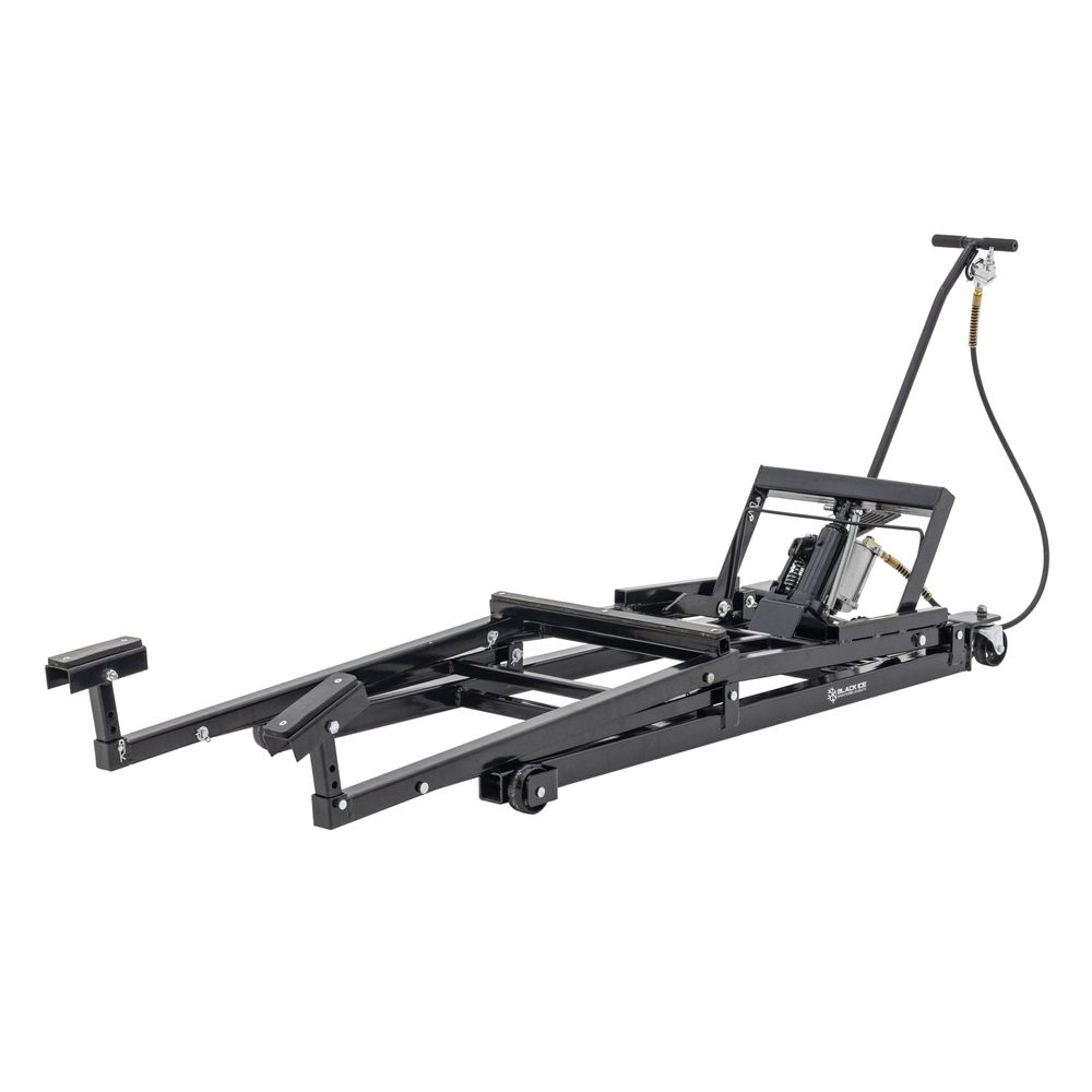 With two operation methods, you’ll be able to raise and lower this lift effortlessly… or with a little effort. Use it with 90-110 psi of compressed air (compressor not included), or with the hydraulic foot pedal.